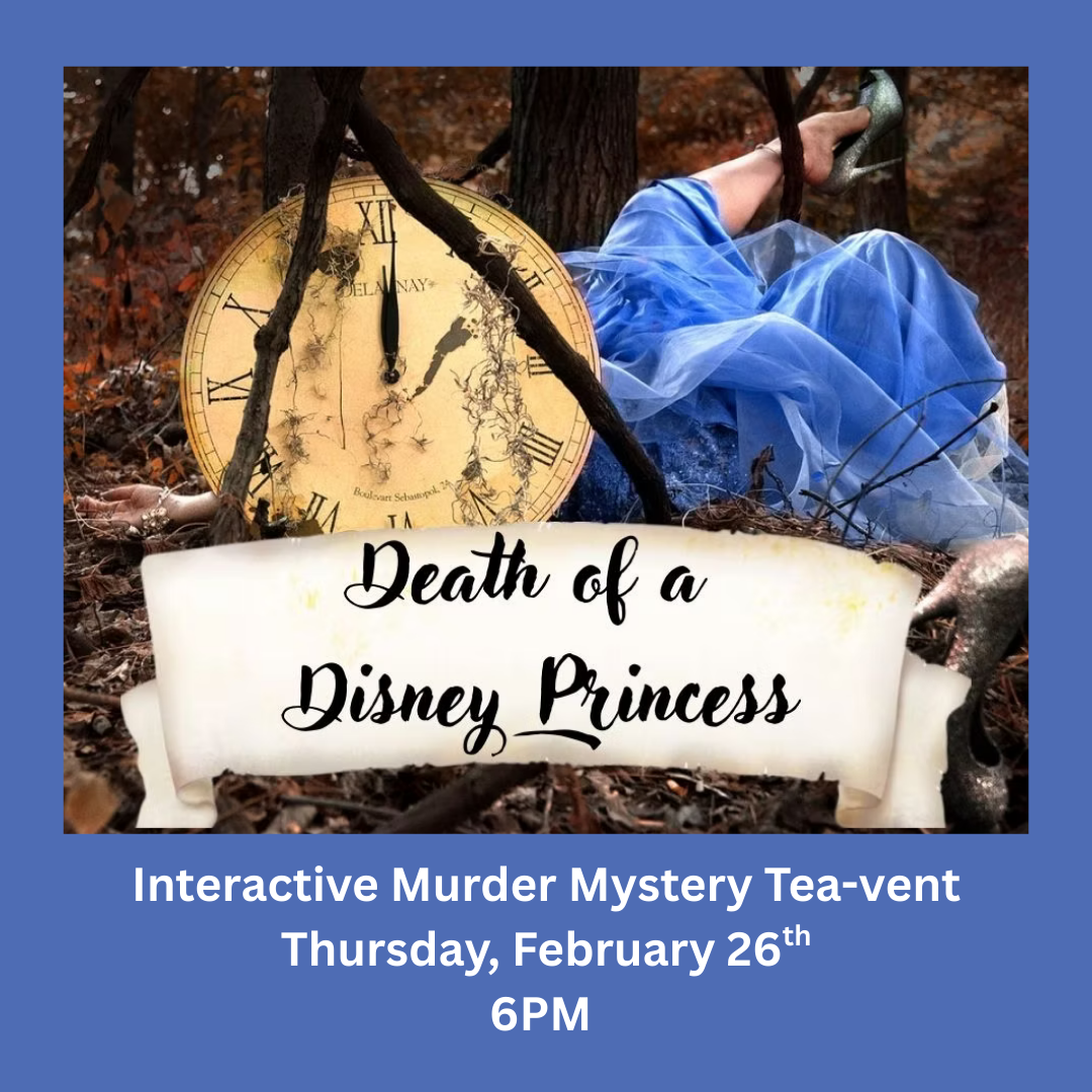 Join us for a Murder Mystery Night at The Tea Shoppe. Our beloved Cinderella has been found dead under circumstances most sinister. Please help us discover who could commit such a heinous act.